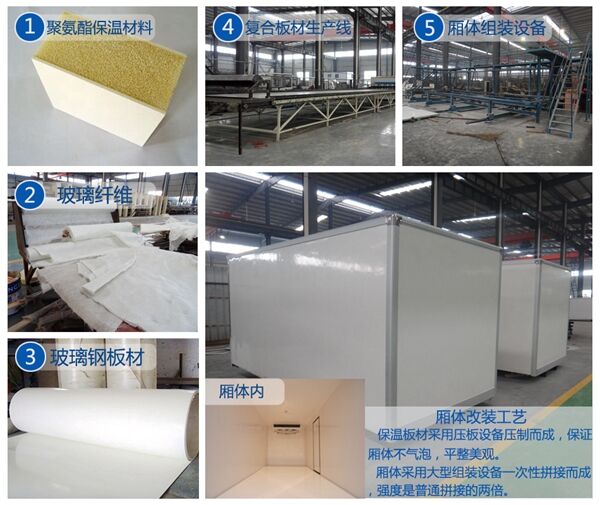 1、厢体采用聚酯湿法制板工艺和玻璃纤维加强全木厢体框架结构,全封闭聚氨酯板块粘接法;