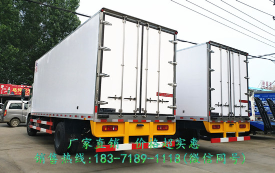 2、厢板材质:内外壁板选用国内优质的2.2mm玻璃钢;中间保温材料选用进口聚氨酯;厢体厚度80mm,门厚度80mm;