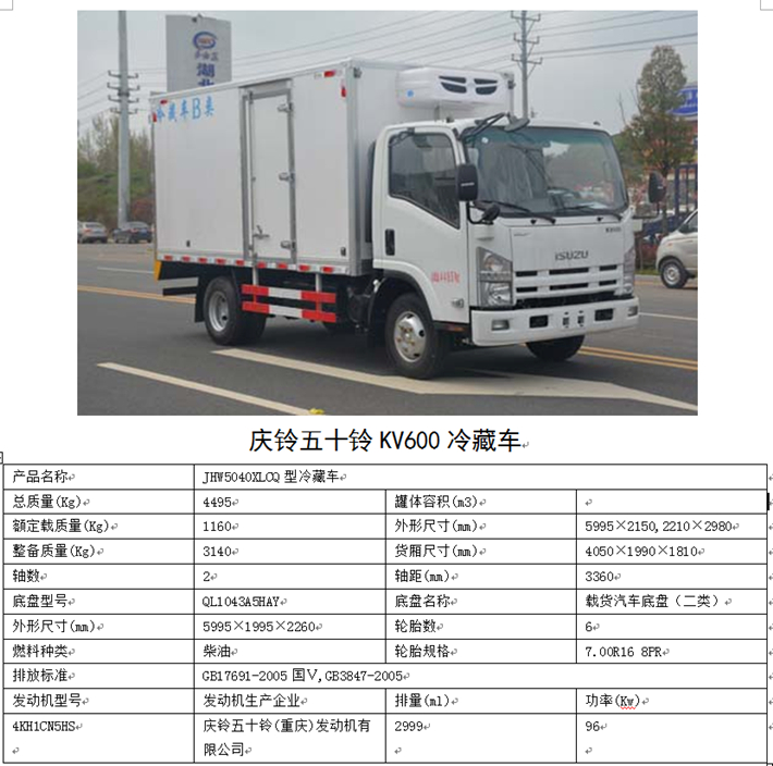 庆铃五十铃冷藏车厢体配置(订车周期快):