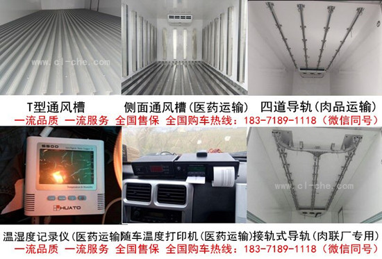 选装设备:肉钩滑道,备电系统,温湿记录仪:随车打印、高低温报警,加温器等。